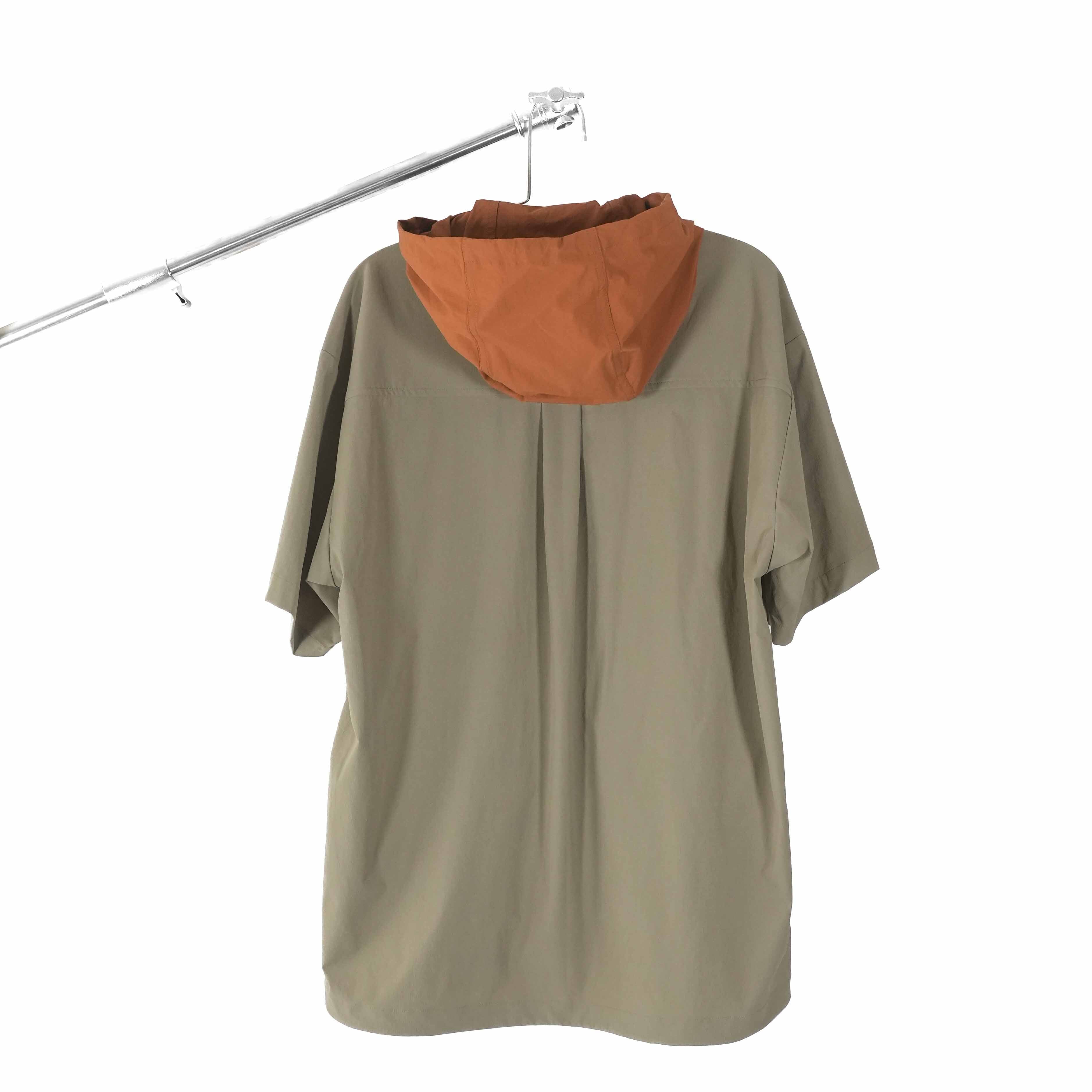 サラッとしたハーフスリーブにフードがついたシャツです。