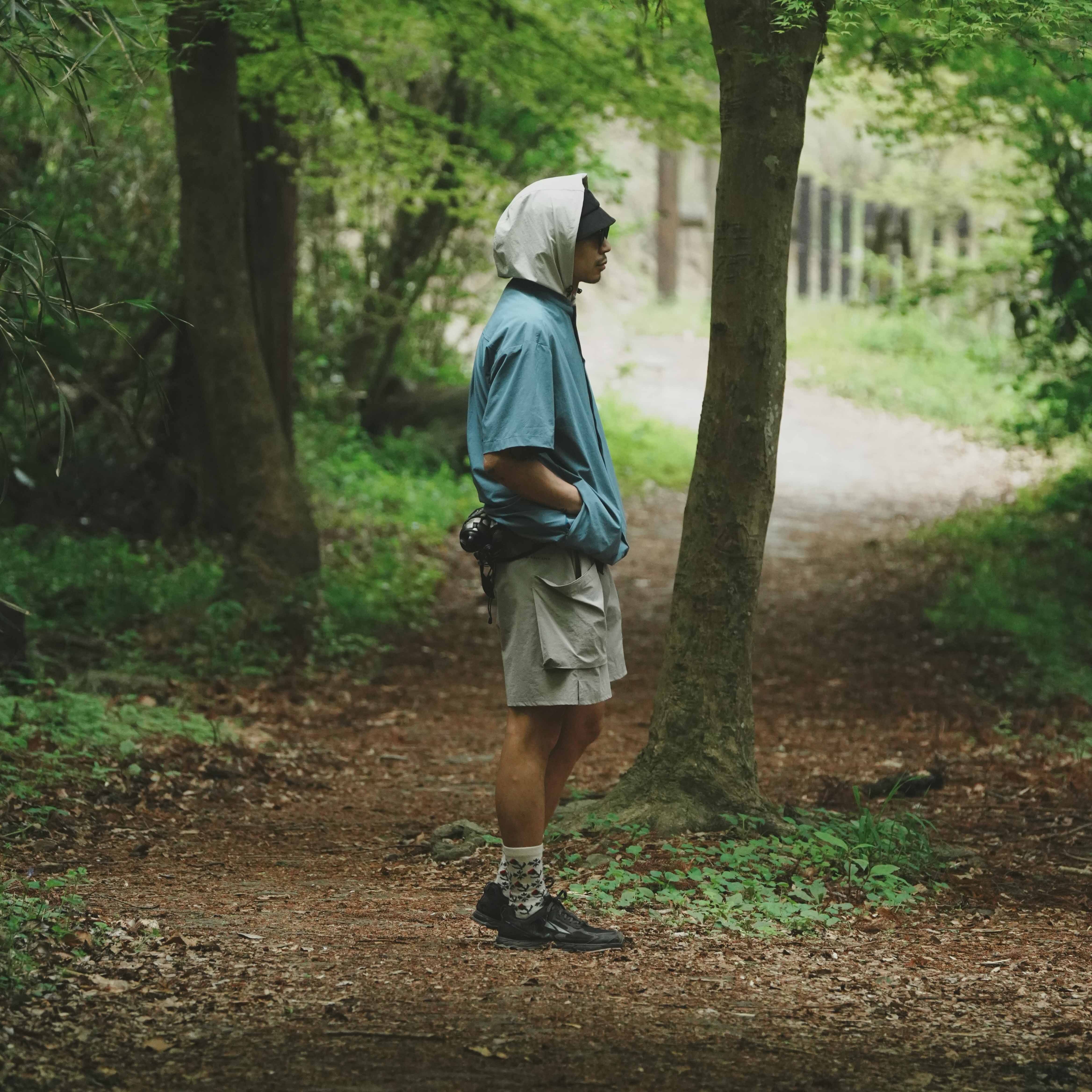 また、フードはRID SHELL PANTSと同じ生地をつかているので、薄すぎずしっかり防風しつつパンツとのカラーコンビネーションを作ることも可能です。