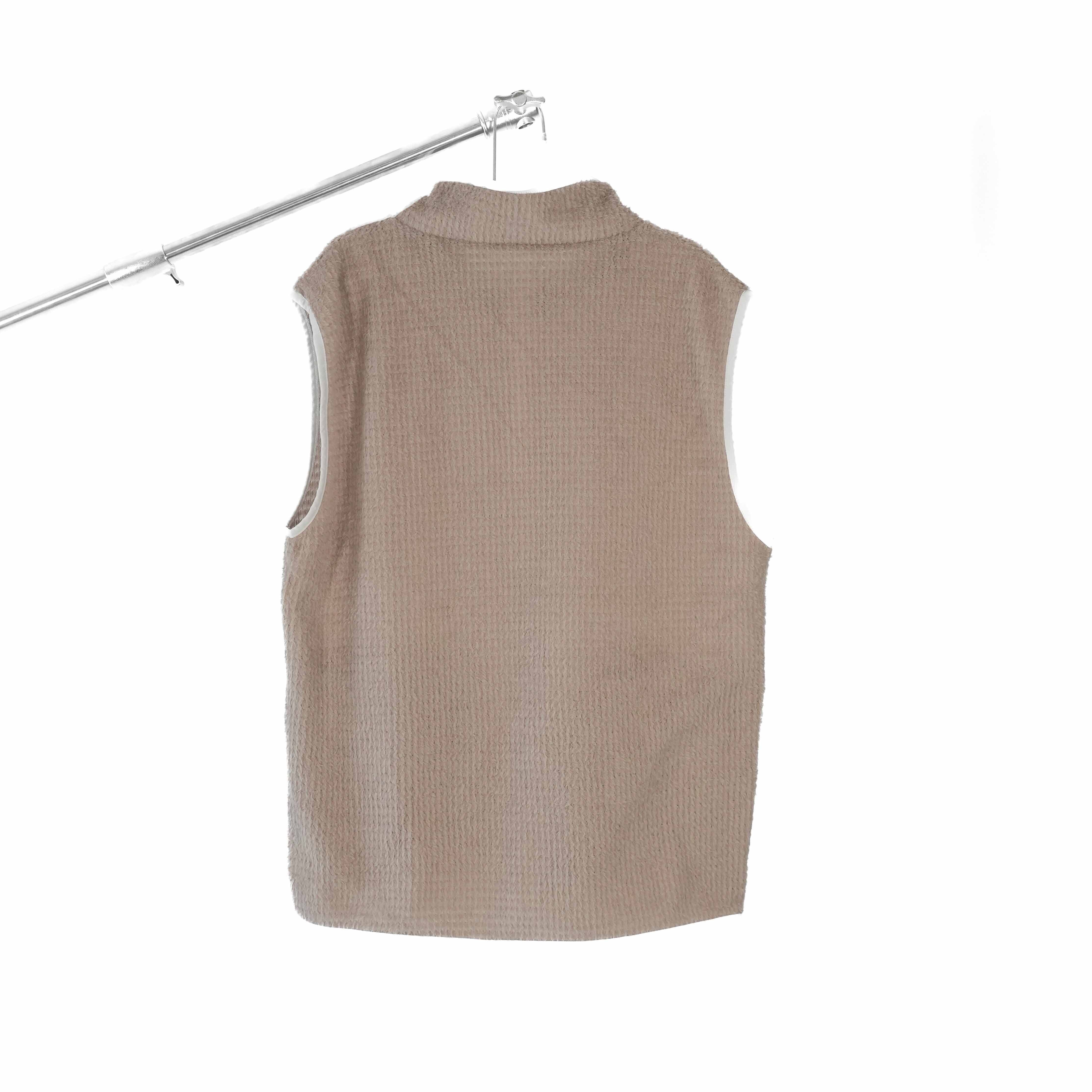 これまでUGLではフードありのプロダクトが多かったのですが、今回はフードレスでゆるめのスタンドカラースタイルのベストです。
